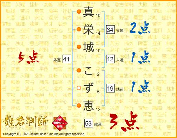 真(10画)栄(14画)城(10画) こ(2画)ず(5画)恵(12画)