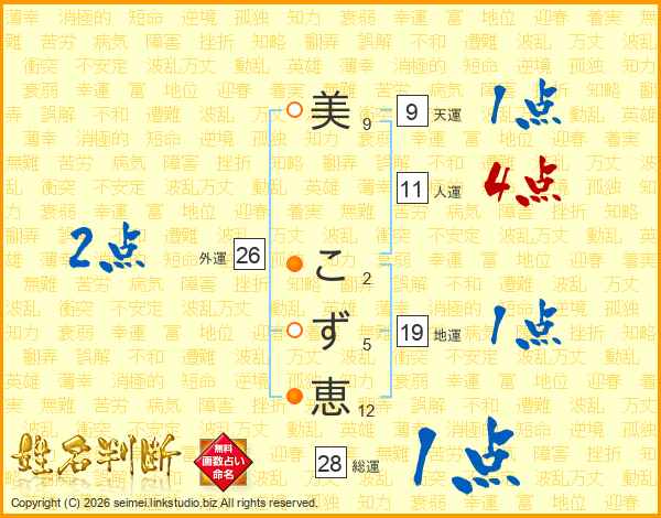 美こず恵さんの総運は28画の1点!
