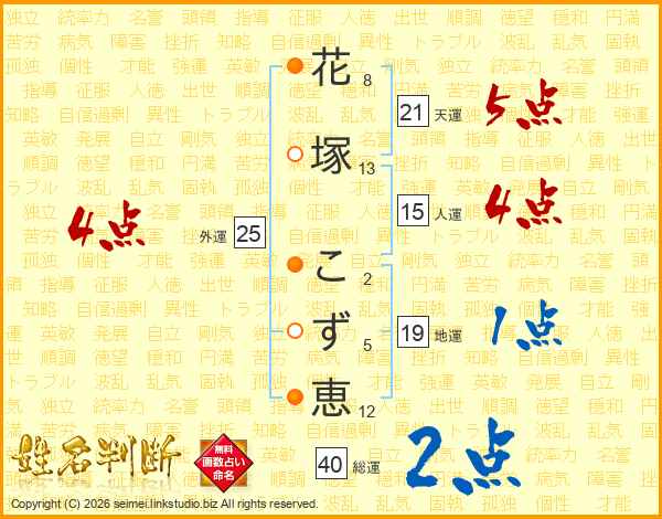 花塚こず恵さんの総運は40画の2点!