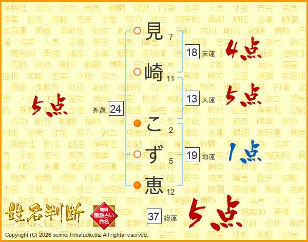 見崎こず恵さんの総運は37画の5点!