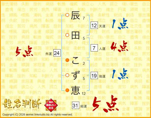 辰田こず恵さんの外運は24画の5点!