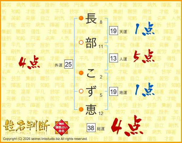 長(8画)部(11画) こ(2画)ず(5画)恵(12画)