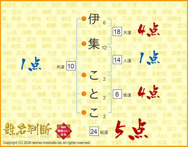 伊(6画)集(12画) こ(2画)と(2画)こ(2画)
