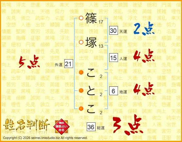 篠塚ことこさんの総運は36画の3点!
