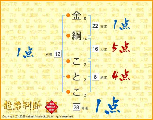 金綱ことこさんの総運は28画の1点!