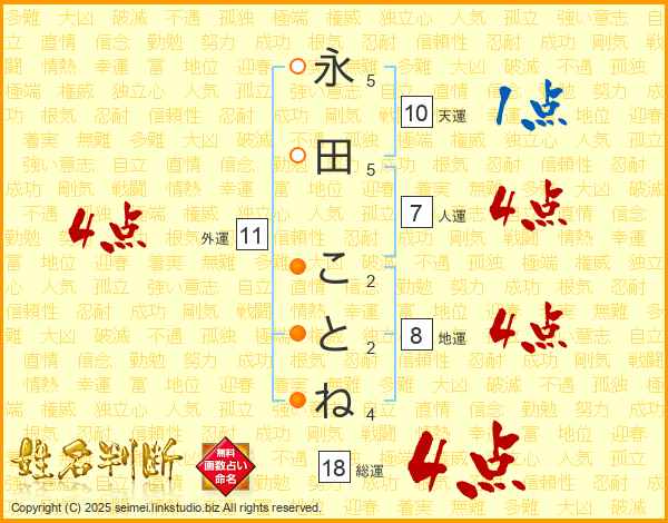 永(5画)田(5画) こ(2画)と(2画)ね(4画)