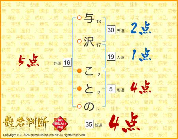 与沢ことのさんの総運は35画の4点!