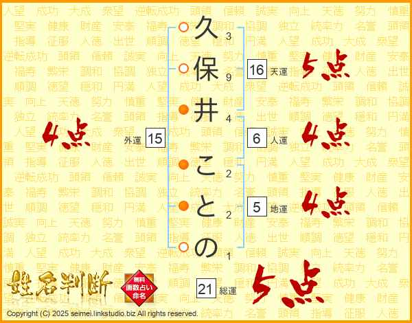 久保井ことのさんの総運は21画の5点!