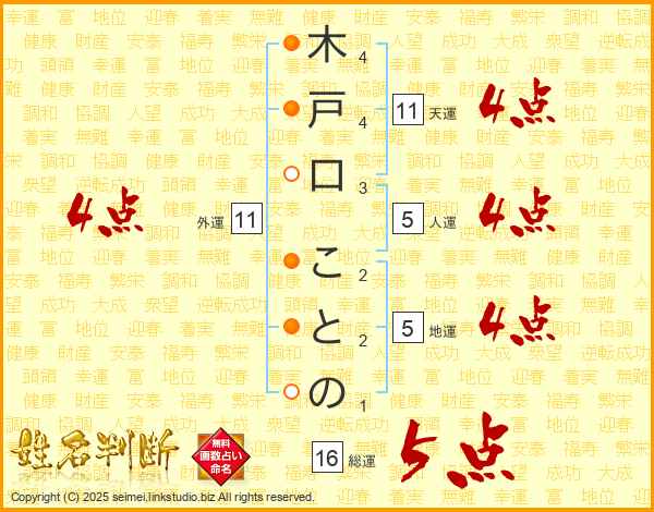 木戸口ことのさんの総運は16画の5点!