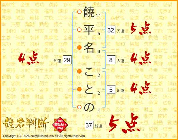 饒平名ことのさんの総運は37画の5点!