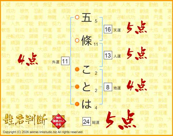 五條ことはさんの天運は16画の5点!