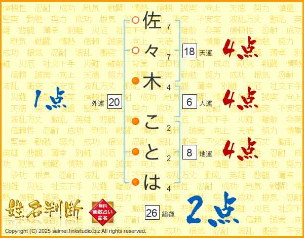 佐(7画)々(7画)木(4画) こ(2画)と(2画)は(4画)