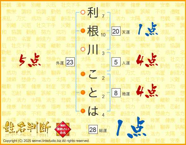 利根川ことはさんの総運は28画の1点!