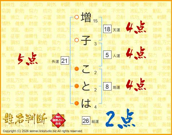 増子ことはさんの総運は26画の2点!