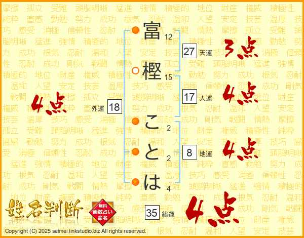 富(12画)樫(15画) こ(2画)と(2画)は(4画)