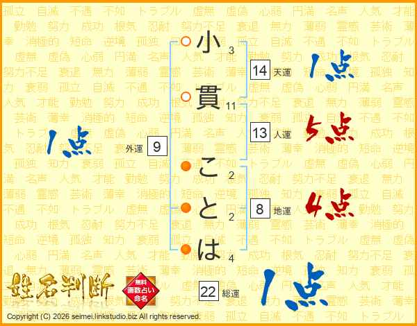 小(3画)貫(11画) こ(2画)と(2画)は(4画)