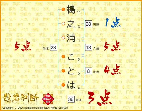 槝之浦ことはさんの総運は36画の3点!