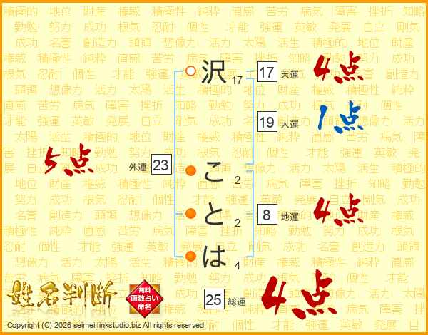 沢ことはさんの天運は17画の4点!