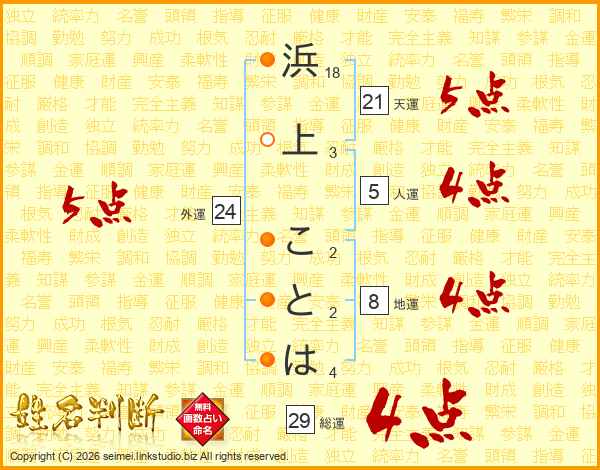 浜(18画)上(3画) こ(2画)と(2画)は(4画)