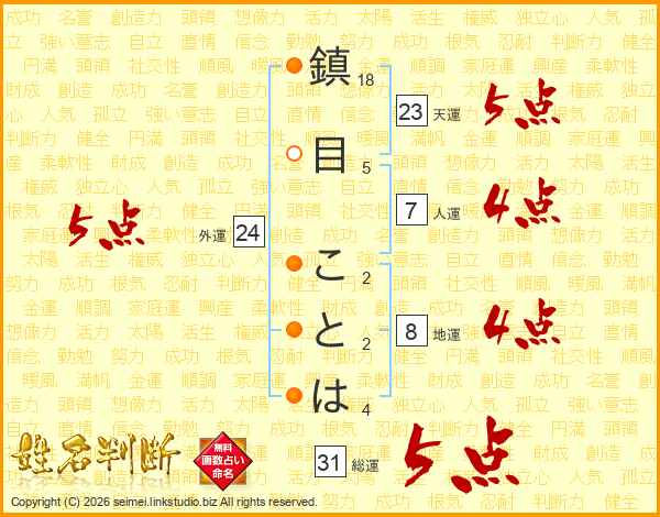 鎮目ことはさんの総運は31画の5点!