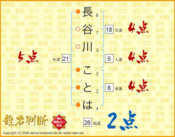 長谷川ことはさんの総運は26画の2点!