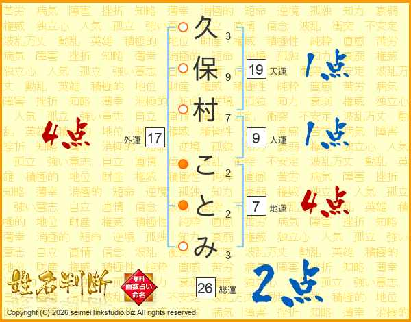 久保村ことみさんの総運は26画の2点!