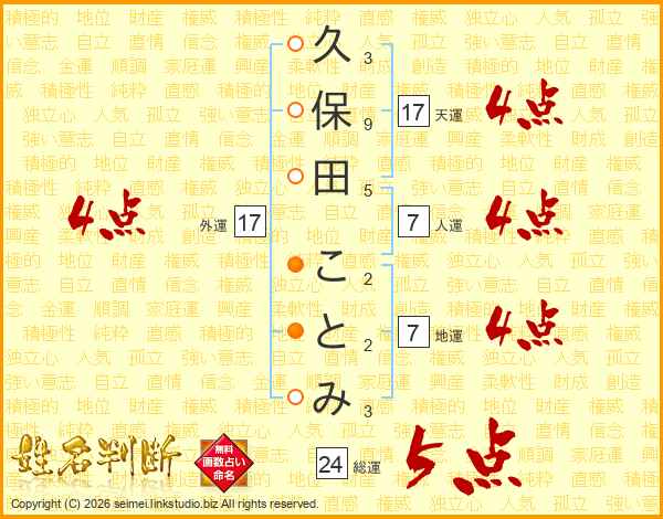 久(3画)保(9画)田(5画) こ(2画)と(2画)み(3画)