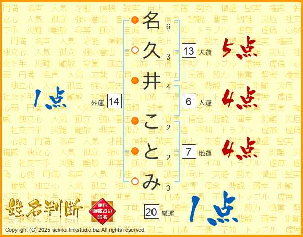 名久井ことみさんの総運は20画の1点!