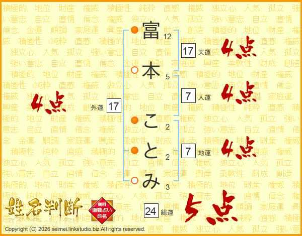 富本ことみさんの外運は17画の4点!