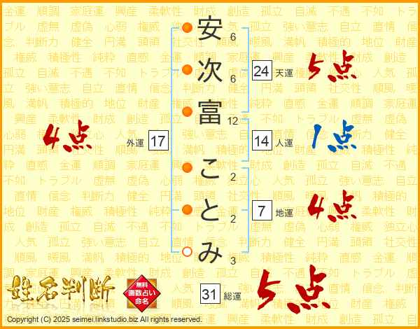 安次富ことみさんの総運は31画の5点!