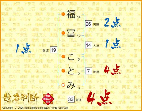 福富ことみさんの総運は33画の4点!