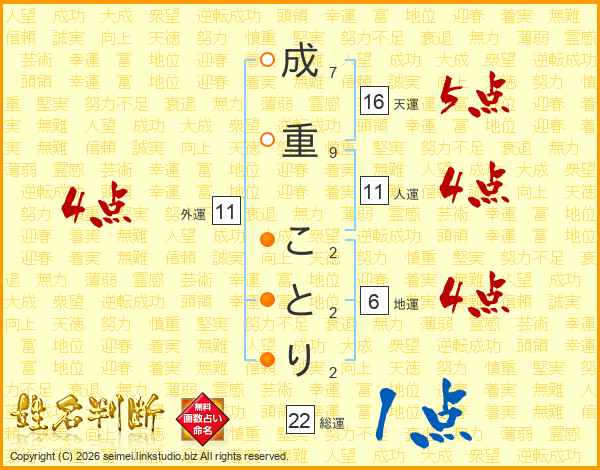 成(7画)重(9画) こ(2画)と(2画)り(2画)