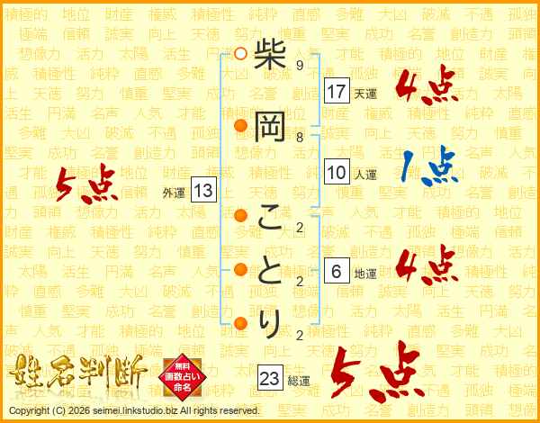 柴岡ことりさんの外運は13画の5点!