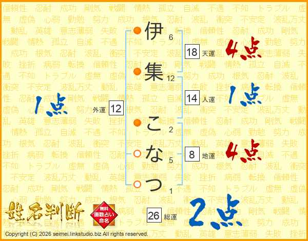 伊集こなつさんの総運は26画の2点!