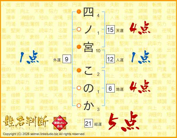 四ノ宮このかさんの総運は21画の5点!