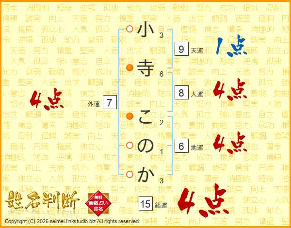 小(3画)寺(6画) こ(2画)の(1画)か(3画)