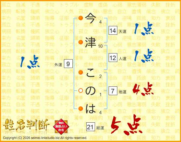 今津このはさんの総運は21画の5点!