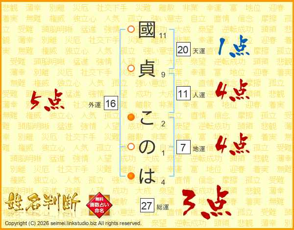 國貞このはさんの総運は27画の3点!