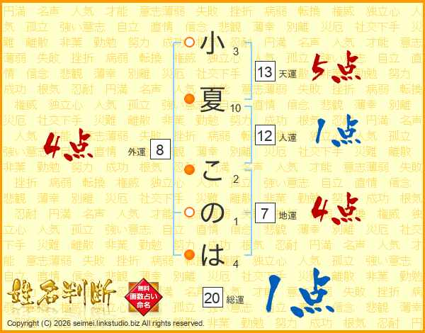 小夏このはさんの天運は13画の5点!