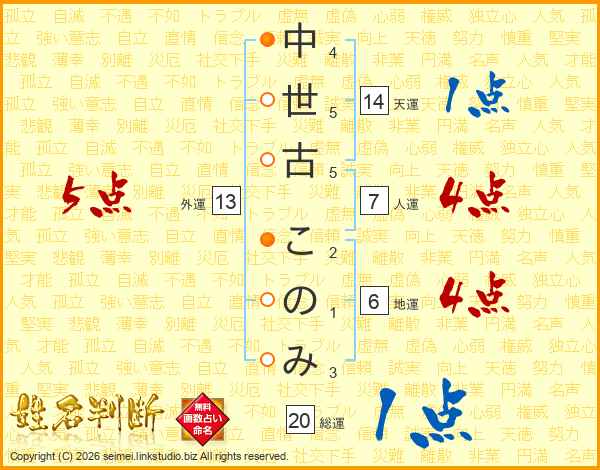 中世古このみさんの天運は14画の1点!