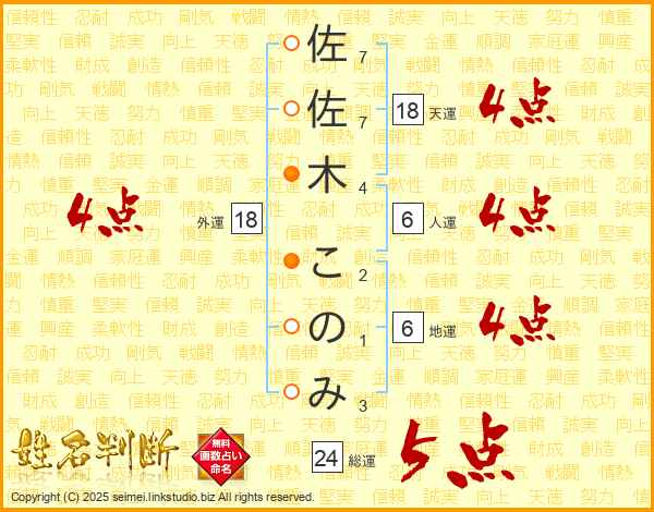 佐佐木このみさんの外運は18画の4点!