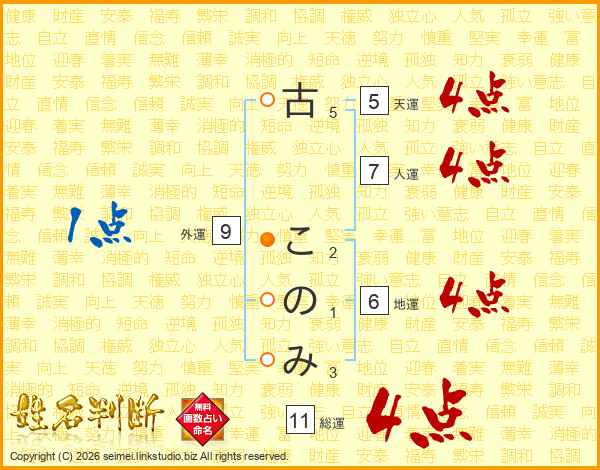 古このみさんの総運は11画の4点!