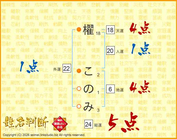 櫂このみさんの総運は24画の5点!