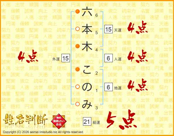 六本木このみさんの外運は15画の4点!