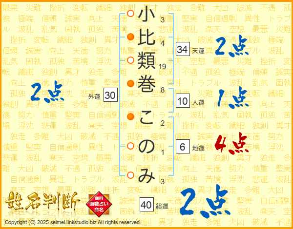 小(3画)比(4画)類(19画)巻(8画) こ(2画)の(1画)み(3画)