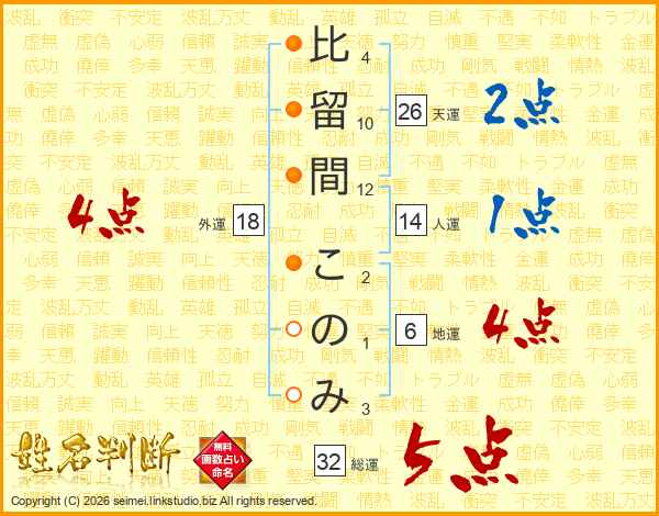 比留間このみさんの天運は26画の2点!