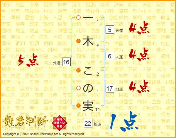 一(1画)木(4画) こ(2画)の(1画)実(14画)