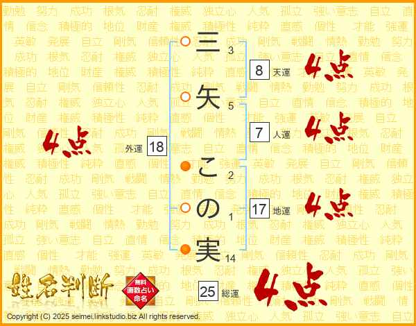 三矢この実さんの総運は25画の4点!