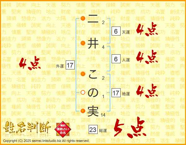 二井この実さんの外運は17画の4点!