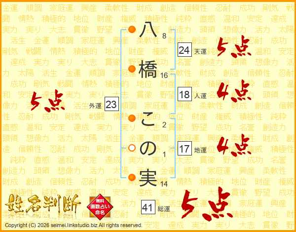 八橋この実さんの総運は41画の5点!